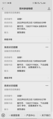 當(dāng)發(fā)生停水、停電、機(jī)械故障等情況;發(fā)生噴頭車離主機(jī)距離小于50米或零距離靠近主機(jī),水壓低于設(shè)定值等情況下智控報(bào)警系統(tǒng)在15分鐘內(nèi)向操作人員手機(jī)進(jìn)行三次短信發(fā)送和三次撥打電話報(bào)警。 |