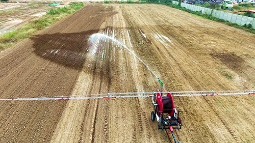產(chǎn)品功能簡介: 1、該產(chǎn)品非常適合中小規(guī)模種植戶進行大田澆水作業(yè),一般規(guī)模在50-200畝之間;或者地塊比較分散。具有小巧靈活,操作簡單,投入少,壓地少,走得直,不用拖拉機牽引等優(yōu)勢。徹底改變傳統(tǒng)卷盤式噴灌機用拖拉機牽引,噴頭車走不直,壓地多的缺點。 2、該產(chǎn)品是一款自帶動力自走卷盤式噴(淋)灌機,卷盤上盤有PE管,口徑63毫米、長度100米。整機自動行走進地,進行鋪放和回收PE管進行澆水作業(yè),畝澆水量大小通過調(diào)整卷盤整機行走速度。PE管全部回收后,自動停機。 3、整機行走驅(qū)動和卷盤回收管通過電機驅(qū)動,電源為48伏12安時電池組,配置汽油機增程器給電池組充電,可實現(xiàn)24小時無限續(xù)航電力。 |
